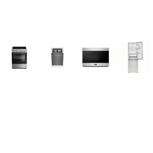 4 STAINLESS APT SIZE : Blomberg 24 Inch Smoothtop Electric Range Oven, 18 inch 48 dB Fully Integrated Dishwasher Energy Star, and Sharp 24" OTR MW, 24" Bottom-Freezer Counter-Depth Refrigerator