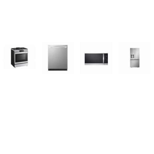 Tags: LG 4 STAINLESS STEEL PACKAGE: Smart Instaview Slide-in Gas Range 5 Sealed Convection Oven Air Fry, 1.8CF OTR MW 300CFM Sensor Cook, TrueSteam Dishwasher 46 dBA Stainless Interior 3rd Rack ENERGY STAR, 33 inchW French Door Refrigerator External WD