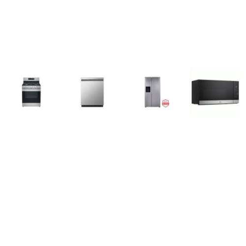 LG 4 STAINLESS : GAS RANGE OVEN, 1.6CF OTR MW, 50 dB DW, SIDE BY SIDE FRDIGE WD