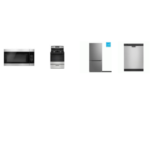 Tags: 4 STAINLESS STEEL APPLIANCE PACKAGE : 1.6CF OTR MW 300 CFM, Gas Range Oven, 59 dBA Dishwasher, 30 Inch Freestanding Bottom-Freezer Refrigerator 18.7CF
