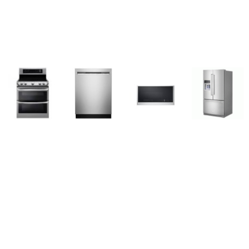 4 STAINLESS : KICHENAID French Door Refrigerator WD, 46 DBA Dishwasher, And LG Electric Range Double ProBake Convection Oven, OTR MW Convection Air Fry