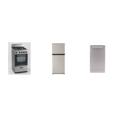 Tags: AVANTI APT SIZE 3 STAINLESS STEEL APPLIANCE PKG : 18" DISHWASHER, 20" GAS RANGE OVEN, 24" 10CF Refrigerator