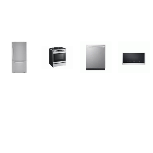 Tags: LG 4 STAINLESS APPLIANCE PKG: Smart Instaview Slide-in Gas Range 5 Sealed Convection Oven Air Fry, 2.0 CF OTR MW 400CFM, TrueSteam Dishwasher 46 dBA Stainless Interior 3rd Rack ENERGY STAR, 33 inchW 25.5CF Drawer Bottom Freezer Refrigerator Factory I