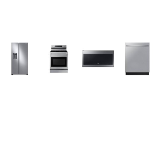 Tags: Samsung 4 STAINLESS STEEL PKG: Electric Smart Range Convection+ Oven Air Fry Non-Stick Griddle, 2.1CF OTR MW 400CFM, Fully Integrated Smart Dishwasher 46 dBA StormWash, 36 inch Counter Depth Side by Side Refrigerator Energy Star