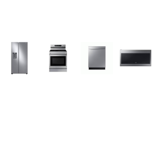 Tags: Samsung 4 STAINLESS STEEL PKG: Electric Smart Range Convection+ Oven Air Fry Non-Stick Griddle, 2.1CF OTR MW 400CFM, AutoRelease 51dBA Dishwasher 3rd Rack, 36 inch Counter Depth Side by Side Refrigerator Energy Star