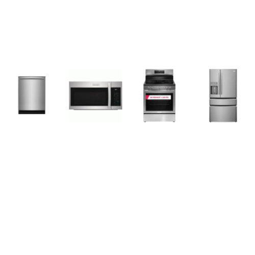Tags: Frigidaire Gallery 4 Smudge-Proof Stainless Steel Package: Electric Range 5 Smooth Top Elements Air Fry Convection Oven, 1.9CF OTR MW 400 CFM, 52 dBA Fully Integrated OrbitClean Dishwasher ENERGY STAR, Counter-Depth 4-Door French Door Refrigerator Ex