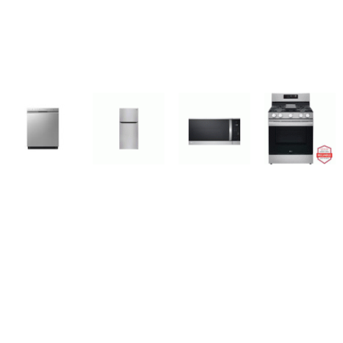 Tags: LG 4 STAINLESS APPLIANCE PKG: Gas Range 5 Sealed Burners 5.8 Cu. Ft. Convection Oven Air Fry Self Clean Griddle, 1.8CF OTR MW 300CFM, Dishwasher 50 dBA Stainless Interior ENERGY STAR, 23.8 cu. ft. Top-Freezer Refrigerator Internal Water Dispenser