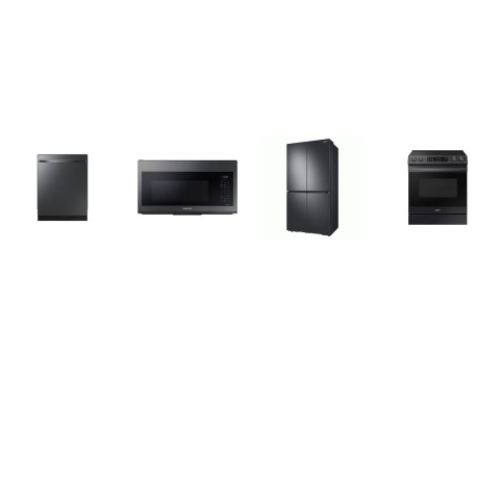 Tags: Samsung 4 Black STAINLESS STEEL PKG: Slide-in 5 Smoothtop Electric Range Air Fry Self Steam Clean Convection Oven, Stainless Interior Dishwasher StormWash 48 dBA 3rd Rack ENERGY STAR, 1.7 cu. ft. Over-The-Range Convection Microwave 300CFM, 22.9CF Cou