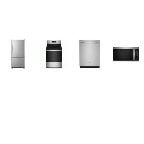 Whirlpool 4 STAINLESS : Smoothtop Electric Range Convection Self-Cleaning Oven Air Fry, 1.7CF OTR MW , Dishwasher 47 dBA, 33 inchW 21.9CF Pull-Out Bottom-Freezer Refrigerator Factory Installed Ice Maker Energy Star