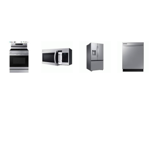 Tags: Samsung 4 STAINLESS STEEL PKG: Electric Range Oven Convection Air Fry, 1.6cf OTR MW 300CFM, Fully Integrated Dishwasher 53DBA, 36 Inch Smart French Door Door Refrigerator 30.5CF Dual Auto Ice Maker External Dispenser
