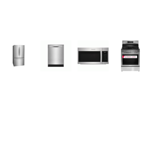 Tags: Frigidaire Gallery 4 Smudge-Proof Stainless Steel Package: Electric Range 5 Smooth Top Elements Air Fry Convection Oven, 1.9CF OTR MW 400 CFM, 52 dBA OrbitClean Dishwasher ENERGY STAR, 28.8 Cu. Ft. French Door Refrigerator Internal Water Ice Mak
