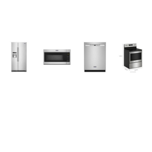 Maytag 4 STAINLESS : Smooth Top Electric Range Oven, Over-the-Range Microwave, 50 dB Dishwasher, 24.5 Cu. Ft. Side-by-Side Refrigerator Ice and Water
