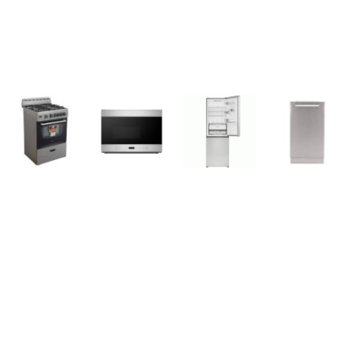 APT SIZE 4 STAINLESS : Avanti 24 inch Gas Range Oven, 18 inch 53 dBA Dishwasher, And Sharp 24 Inch OTR Microwave, 24 in. Bottom-Freezer Counter-Depth Refrigerator