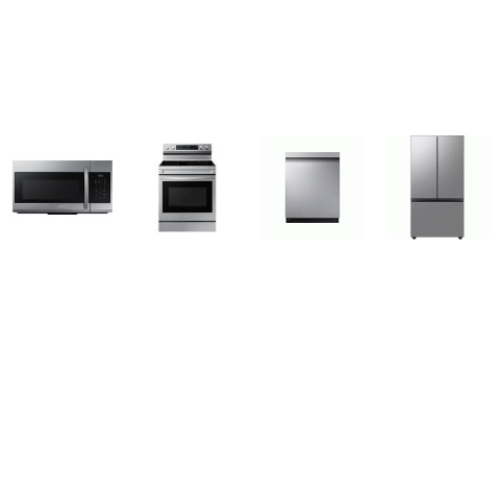 Tags: Samsung 4 STAINLESS STEEL PKG: Electric Smart Range Convection Oven Air Fry Non-Stick Griddle, 1.7cf OTR MW 300CFM, 46 dBA Dishwasher StormWash 3rd Rack Half Load, 36 Inch Counter Depth Smart 3-Door French Door Refrigerator AutoFill Pitcher