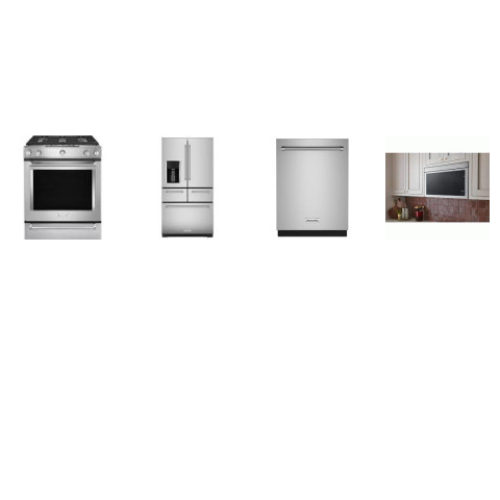 Kitchenaid 4 Stainless : 36-Inch French 5-Door Refrigerator EXT WD In-Door-Ice Platinum Interior, Gas Slide-In Range True Convection Oven Baking Drawer, OTR MW Flush Built-In Design