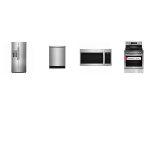 Tags: Frigidaire Gallery 4 Smudge-Proof Stainless Steel Package: Electric Range 5 Smooth Top Elements Air Fry Convection Oven, 1.9CF OTR MW 400 CFM, 52 dBA Fully Integrated OrbitClean Dishwasher, Counter Depth Side by Side Refrigerator Ice Maker Filtered W