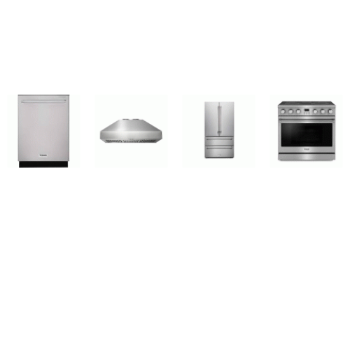 Thor Kitchen 4 Stainless : 36 Inch Electric Range Convection Oven, Wall Mount Range Hood 1,000 CFM, Dishwasher 46 dB, French 4-Door Refrigerator Ice Maker