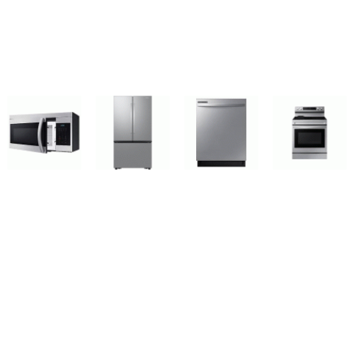 Tags: SAMSUNG 4 STAINLESS STEEL APPLIANCE PKG : Smoothtop Range 5 Element Convection Oven No-Preheat Air Fry Self Steam Clean, 1.6cf OTR MW 300CFM, Fully Integrated Dishwasher 53DBA, 32 cu. ft. 3-Door French Door Refrigerator Dual Auto Ice Maker