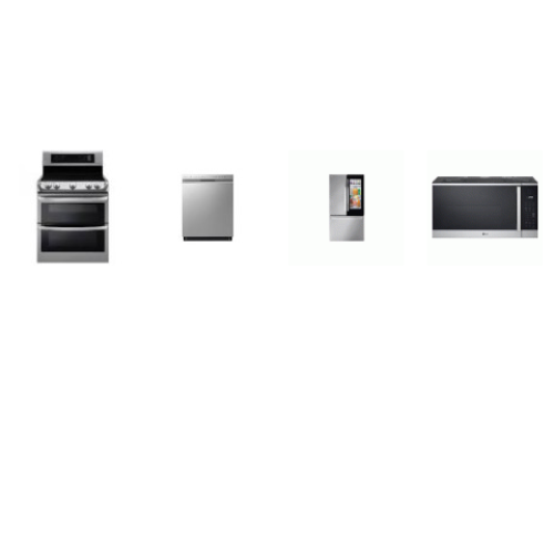 LG 4 STAINLESS APPLIANCE PKG: Electric Range Double Oven ProBake Convection, 1.8CF OTR MW, Dishwasher 48dB, 36 Inch Counter Depth Smart French Door Refrigerator InstaView Ice Maker