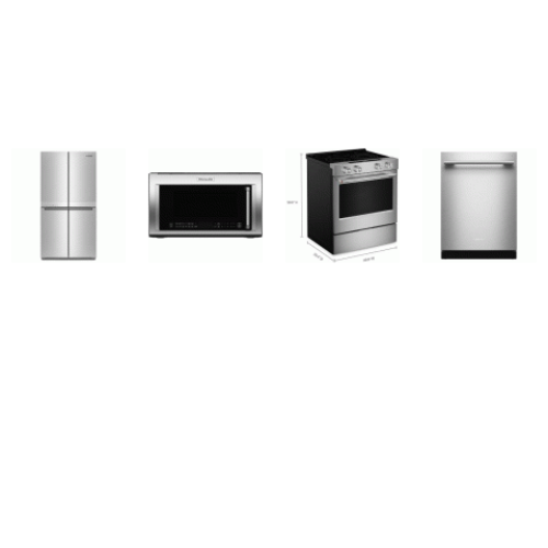 Kitchenaid 4 Stainless : Slide-In Electric Range Convection Oven Air Fry, OTR MW Convection Air Fry, 41DBA Dishwasher, Counter-Depth French 4-Door Refrigerator W/Ice Maker