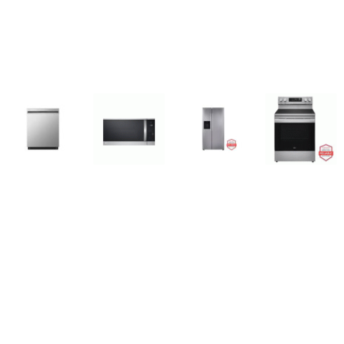 LG 4 STAINLESS PKG : SMOTHTOP RANGE ProBake Convection OVEN Air Fry, 1.8CF OTR MW, 50dB Dishwasher , SIDE BY SIDE FRDIGE WD