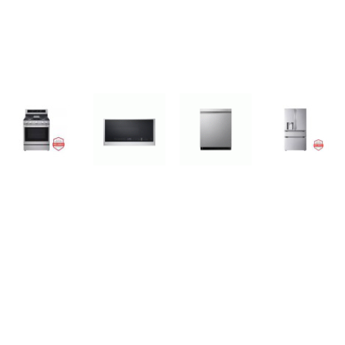 Tags: LG 4 STAINLESS APPLIANCE PKG: 5 Gas Burners Range True Convection InstaView Oven Air Fry Griddle, 2.0 CF OTR MW 400CFM, Dishwasher 44 dB Adjustable 3rd Rack, 29CF Smart 4-Door French Door Refrigerator Full-Convert Drawer Dual Ice Maker Water Dispenser