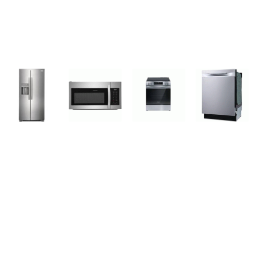 Tags: Frigidaire 4 STAINLESS STEEL PKG : SLIDE IN ELECTRIC RANGE OVEN, 1.8CF OTR MW, 49 dBA 24" Stainless Steel Tub Built-In Dishwasher, 22.3 Cu. Ft. 36" Counter Depth Side by Side Refrigerator
