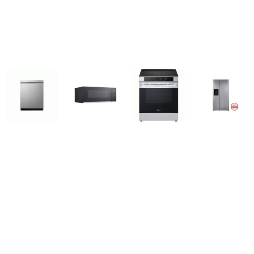 Tags: LG 4 STAINLESS STEEL APPLIANCE PKG : Induction Slide-in Range Convection Oven Air Fry, 1.3 cu. ft. Smart Low Profile Over-the-Range Microwave Oven, TrueSteam Dishwasher 44 dBA, 27 cu. ft. Side-by-side Refrigerator Ice and Water Bar Handle Design