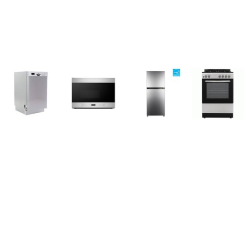 APT SIZE 4 STAINLESS STEEL APPLIANCE PKG : 24" GAS RANGE OVEN, 24" OTR MW, 18" DISHWASHER, 24" 10.1 cu. ft. Top Freezer Refrigerator