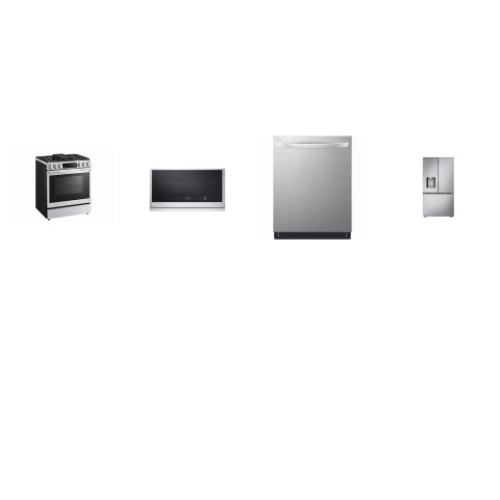 Tags: LG 4 STAINLESS STEEL APPLIANCE PKG : ProBake Convection InstaView Gas Slide-In Range Air Fry, 2.1 cu. ft. Smart Over-the-Range Microwave ExtendaVent, Dishwasher QuadWash TrueSteam 42 dBA, Counter-Depth MAX with Zero Clearance 3-Door French Door Refrigerat