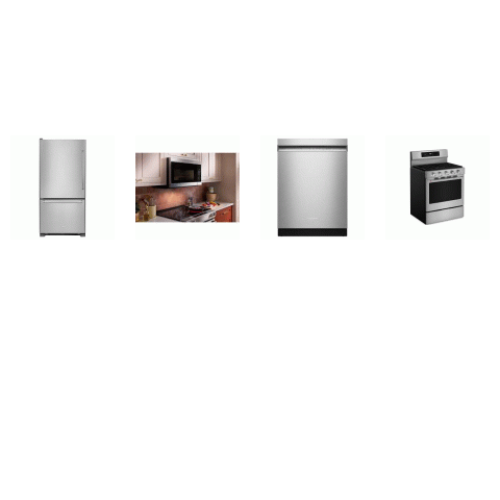 Tags: KitchenAid 4 Stainless Steel Appliances PKG : Gas Convection Range Oven Air Fry, 1.9CF OTR Microwave 400 CFM, Dishwasher 41dBA, 30" Left Hinge Bottom Mount Refrigerator