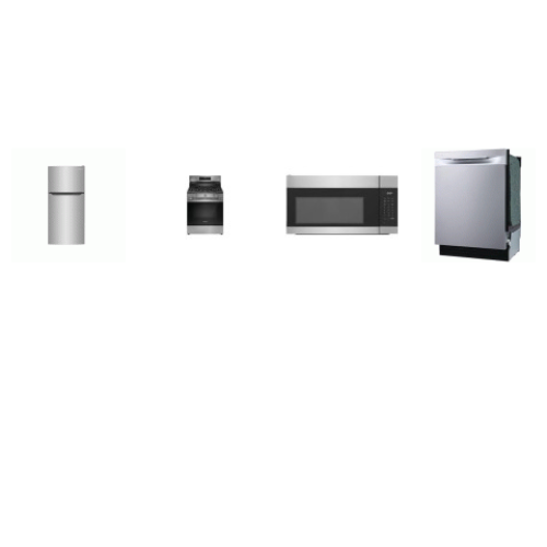Tags: Frigidaire 4 Stainless Steel Package: Continuous Grates 5 Sealed Burner Gas Range Convection Oven Air Fry, 1.7CF OTR MW 300 CFM, 49 dBA Dishwasher, 30"W 18 Cu. Ft. Garage Ready Top Freezer Refrigerator