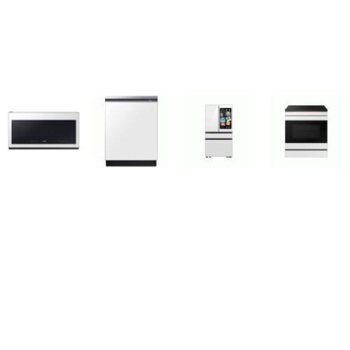 Tags: SAMSUNG 4 White Glass Appliance Pkg : Slide-in Induction Range Convection+ Oven Air Fry, 2.0CF Over-the-Range Microwave 400 CFM, AutoRelease 46dBA Dishwasher StormWash, 29CF 4-Door French Door Refrigerator AI Family Hub+ & AI Vision Inside Dual Auto Ice Maker Internal Water Dispenser
