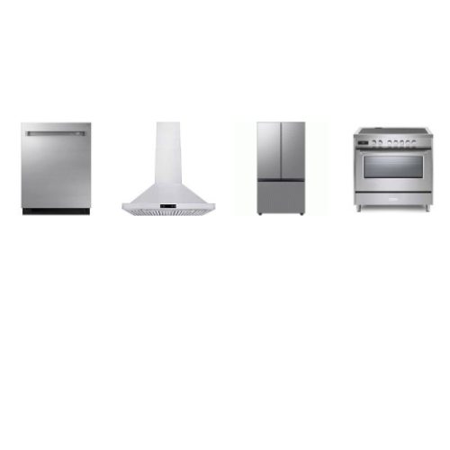 Tags: 4 STAINLESS STEEL APPLIANCE PKG : Verona Induction Range Convection Oven, 36 Inch Chimney Range Hood 600 CFM, AND SAMSUNG Counter Depth French Door Refrigerator AutoFill Water Pitcher Ice Maker, Dacor 42 dBA Dishwasher