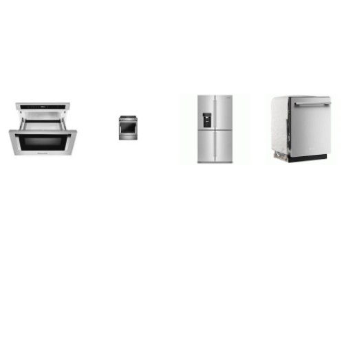 Tags: KitchenAid 4 Stainless Steel Appliance PKG : Electric Downdraft Slide-In Range True Convection Oven, 36" Counter-Depth 19.4 Cu Ft 4-Door Refrigerator with Flexible Temperature Zone Ext WD, Dishwasher 44 dBA, 24" Under-Counter Microwave Oven Drawer
