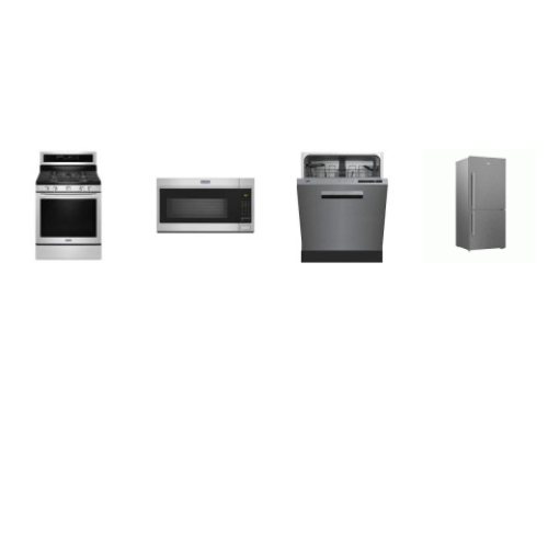 Tags: 4 STAINLESS STEEL APPLIANCE PKG : beko 30 Inch Counter-Depth Bottom Mount Refrigerator, Dishwasher 48 dBA And May tag 1.7CF OTR MW, Gas Range True Convection Oven