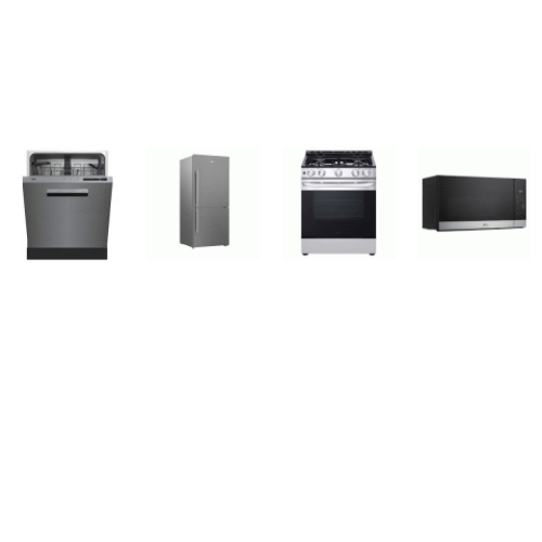 4 STAINLESS STEEL APPLIANCE PKG : beko 30 Inch Counter-Depth Bottom Mount Refrigerator, Dishwasher 48 dBA And LG OTR MW, SLIDE GAS RANGE OVEN