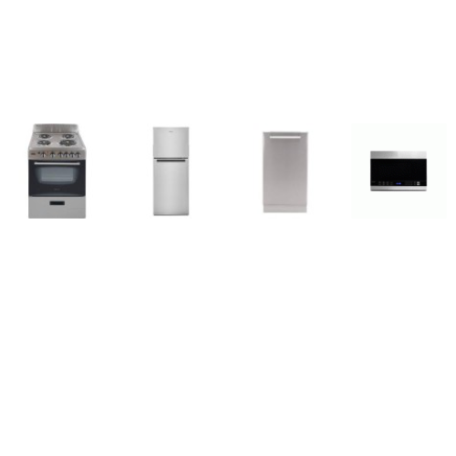 APT SIZE 4 STAINLESS STEEL APPLIANCE PKG : 24" ELECTRIC RNAGE OVEN, 24" OTR MW, 18" DISHWASHER, 24" Top-Freezer Refrigerator 11.6CF