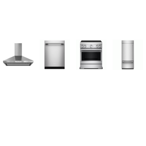 Tags: KitchenAid 4 STAINLESS STEEL APPLIANCE PKG : Induction Commercial-Style Range Even-Heat True Convection Oven Air Fry, Canopy Hood, 360° Max Jets Dishwasher ProDry 44 dBA, 36" Built-In Bottom Mount Refrigerator Platinum Interior
