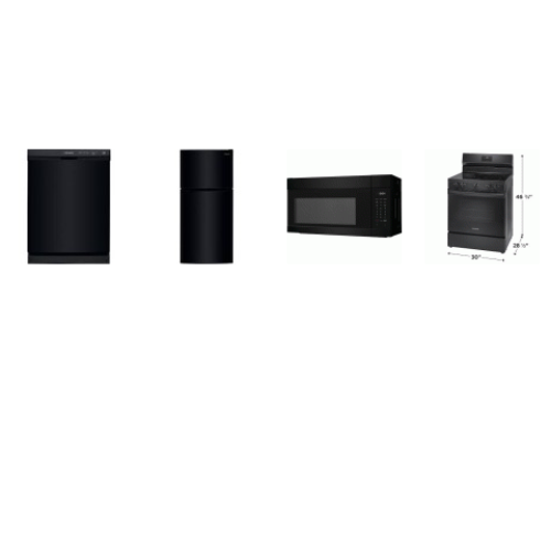 Tags: FRIGIDAIRE 4 BLACK APPLIANCE PKG : ELECTRIC SMOOTH TOP RANGE OVEN, OTR MW, Dishwasher ENERGY STAR 55 dBA, 30" 18 Cu. Ft. Garage Ready Top Freezer Refrigerator