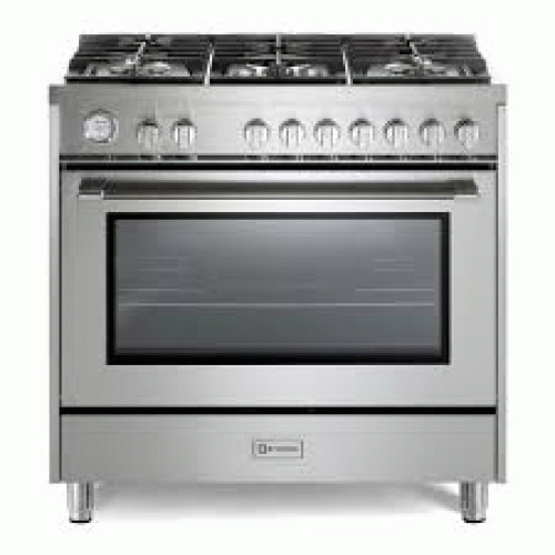Tags: 36 Inch Gas Range 5 Sealed Burners 5.0 Cu. Ft. Oven 21, 000 BTU Oven Power 5 Functions Continuous Cast Iron Grates Chromed Pro Knobs Bell Timer Safety Shut-Off Soft-Close Door Storage Drawer 35.875"W 25.25"D 37"H Stainless Steel