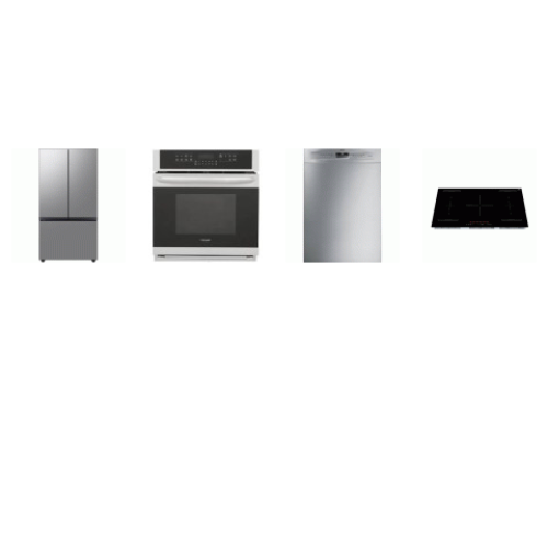 4 STAINLESS PKG : SAMSUNG COUNTER DEPTH Door Refrigerator AutoFill Water Pitcher, SMEG Dishwasher 48dBA, Frigidaire Gallery 30'' Single True Convection Wall Oven, Forno 36-Inch Induction Cooktop