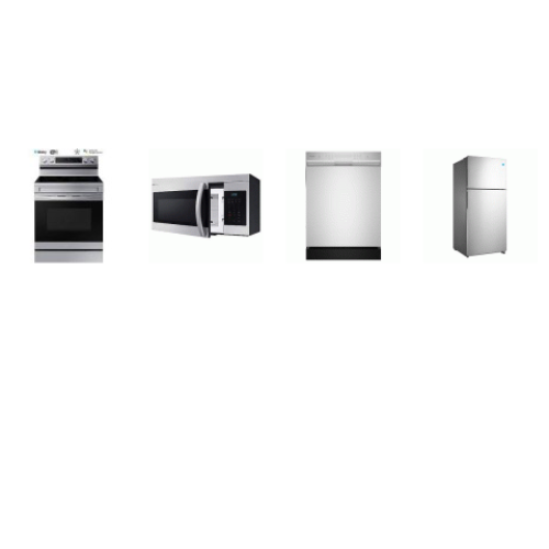 4 STAINLESS PKG : ELECTRIC RANGE CONVECTION OVEN AIR FRY, OTR MW, 52dB Dishwasher, 30" 18.1 cu. ft. Top Freezer Refrigerator
