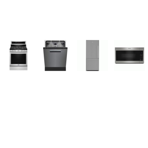 Tags: 4 STAINLESS STEEL APPLIANCE PKG : beko 30 Inch Counter-Depth Bottom Mount Refrigerator Ice Maker, Tall Tub Dishwasher 39dBA, and Maytag OTR MW, Gas Range True Convection Oven