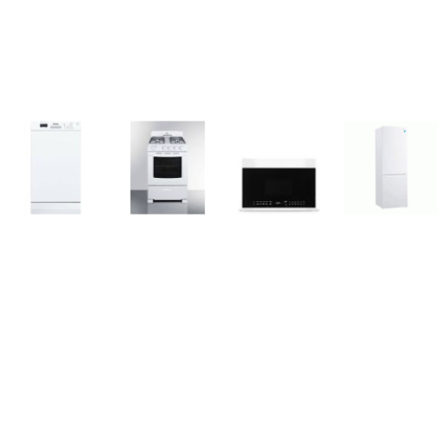 APT SIZE 4 WHITE APPLIANCE PKG : 24" GAS RANGE OVEN, 18" DISHWASHER, 24" OTR MW, 24" 10.3 cu. ft. Counter Depth Bottom Mount Refrigerator