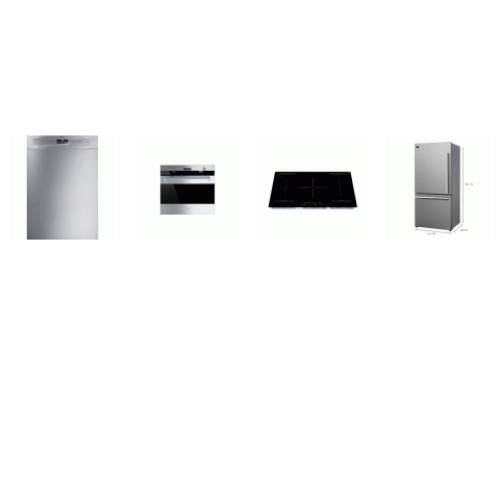 Tags: 4 STAINLESS APPLIANCE PKG : SMEG 49 dBA DISHWASHER HALF LOAD, 30 Inch Single Electric Wall Oven True European Double Convection, and Forno 36-Inch Induction Cooktop, 31-Inch 17.2CF Bottom Freezer Refrigerator W/Ice Maker