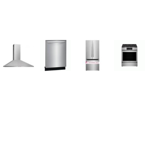 Tags: Frigidaire 4 STAINLESS APPLIANCE PKG : 30" SLIDE IN Gas Range Total Convection Oven Air Fry, Canopy Wall-Mounted Hood 400CFM, Dishwasher 52 dBA, 30"W French Door Refrigerator Internal Water Dispenser Ice Maker